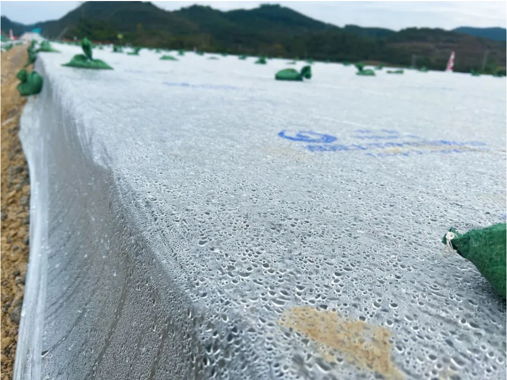 一張薄如蟬翼的“塑料膜”竟可以鎖住自重200倍的水分?走進水口-崇左-愛店高速公路(崇左至愛店口岸段,以下簡稱崇愛高速)K2、K8路面試驗段,3.4公里的水泥穩(wěn)定碎石都敷上了一層“面膜”。